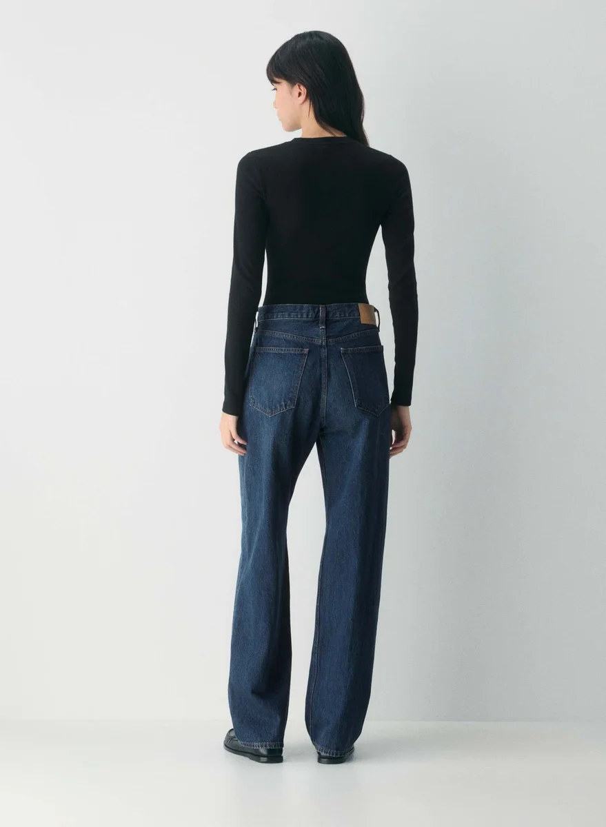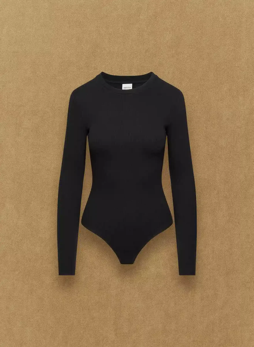 This is a longsleeve bodysuit with a crew neckline. It’s made with a heavyweight version of our beloved HomeStretch™ Rib — body-hugging, stretchy ribbed fabric with a cottony soft feel. Your everyday rib.