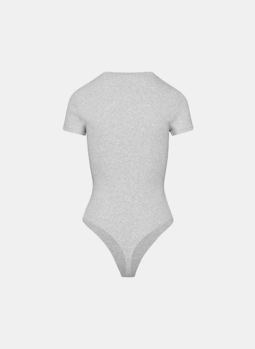 This is a go-to crewneck shortsleeve bodysuit with a thong-cut bottom and a tight fit. It’s made with a heavyweight version of our beloved HomeStretch™ Rib — body-hugging, stretchy ribbed fabric with a cottony soft feel. Your everyday rib.