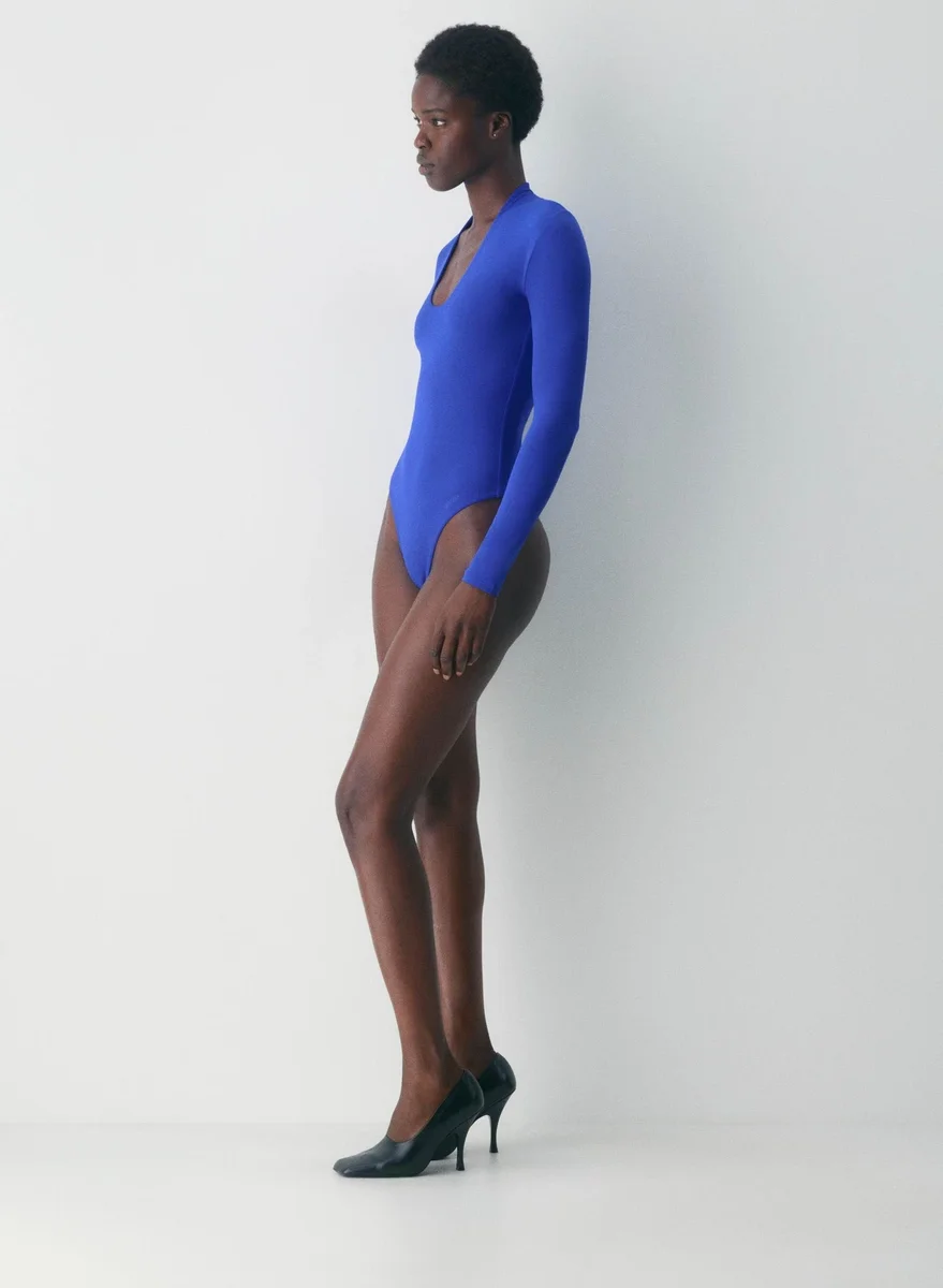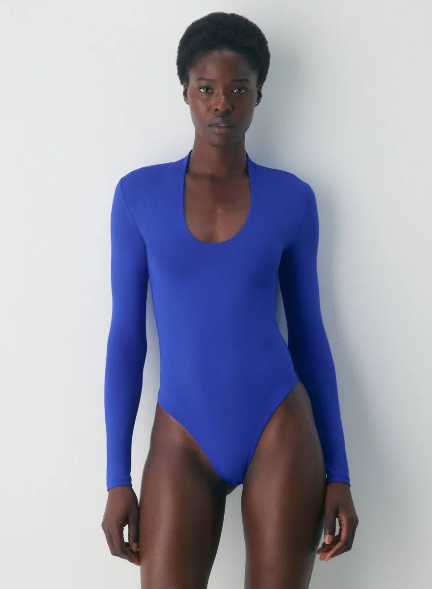 Double-layer U-neck longsleeve bodysuit with a second-skin feel
