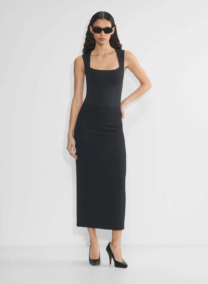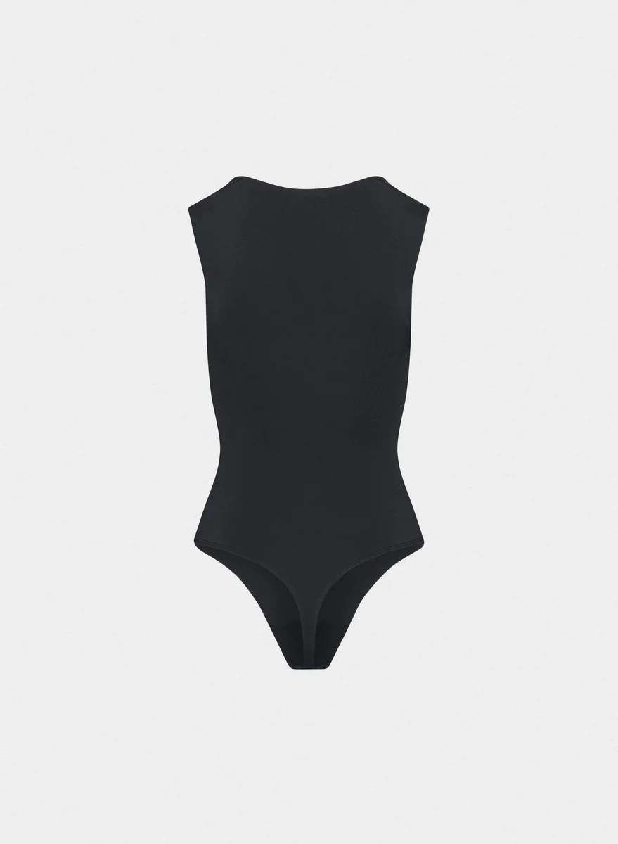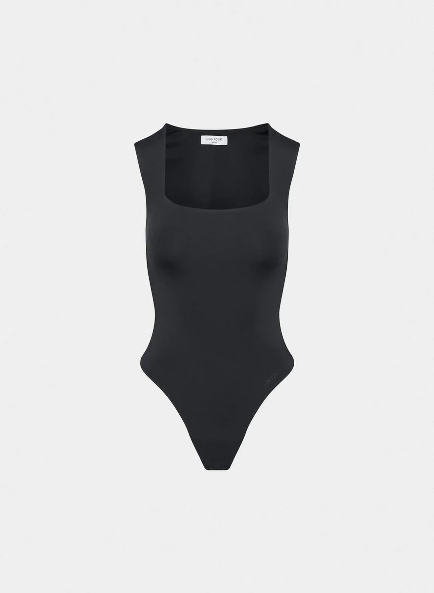 This is a sleeveless squareneck bodysuit with a thong-cut bottom and double-layer fabric for a supportive fit. It’s made with Contour — luxe, ultra-flattering fabric coveted for its smoothing effect and second-skin feel. Nothing more essential.
