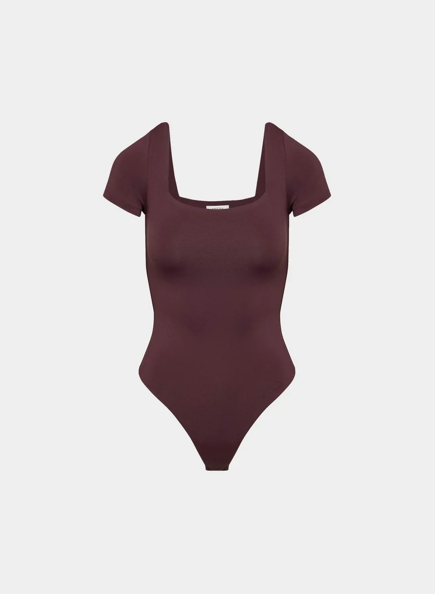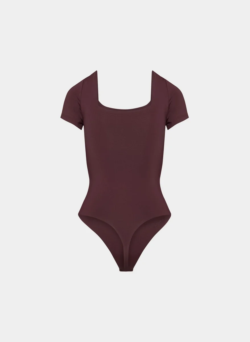 Pretend you stuck with balletA cult classic for a reason. This is a squareneck shortsleeve bodysuit with a thong-cut bottom and double-layer fabric for a