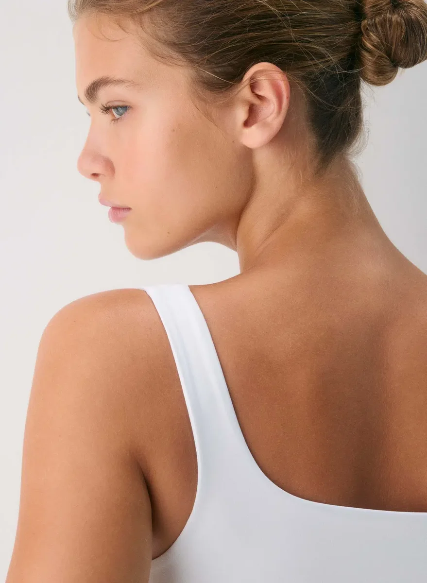 A cult classic for a reason. This is a squareneck sleeveless bodysuit with a thong-cut bottom and double-layer fabric for a supportive fit. It’s made with Aritzia’s Original Contour — luxe, ultra-flattering fabric coveted for its smoothing effect and second-skin feel. Nothing more essential.
