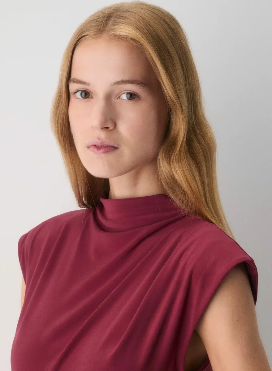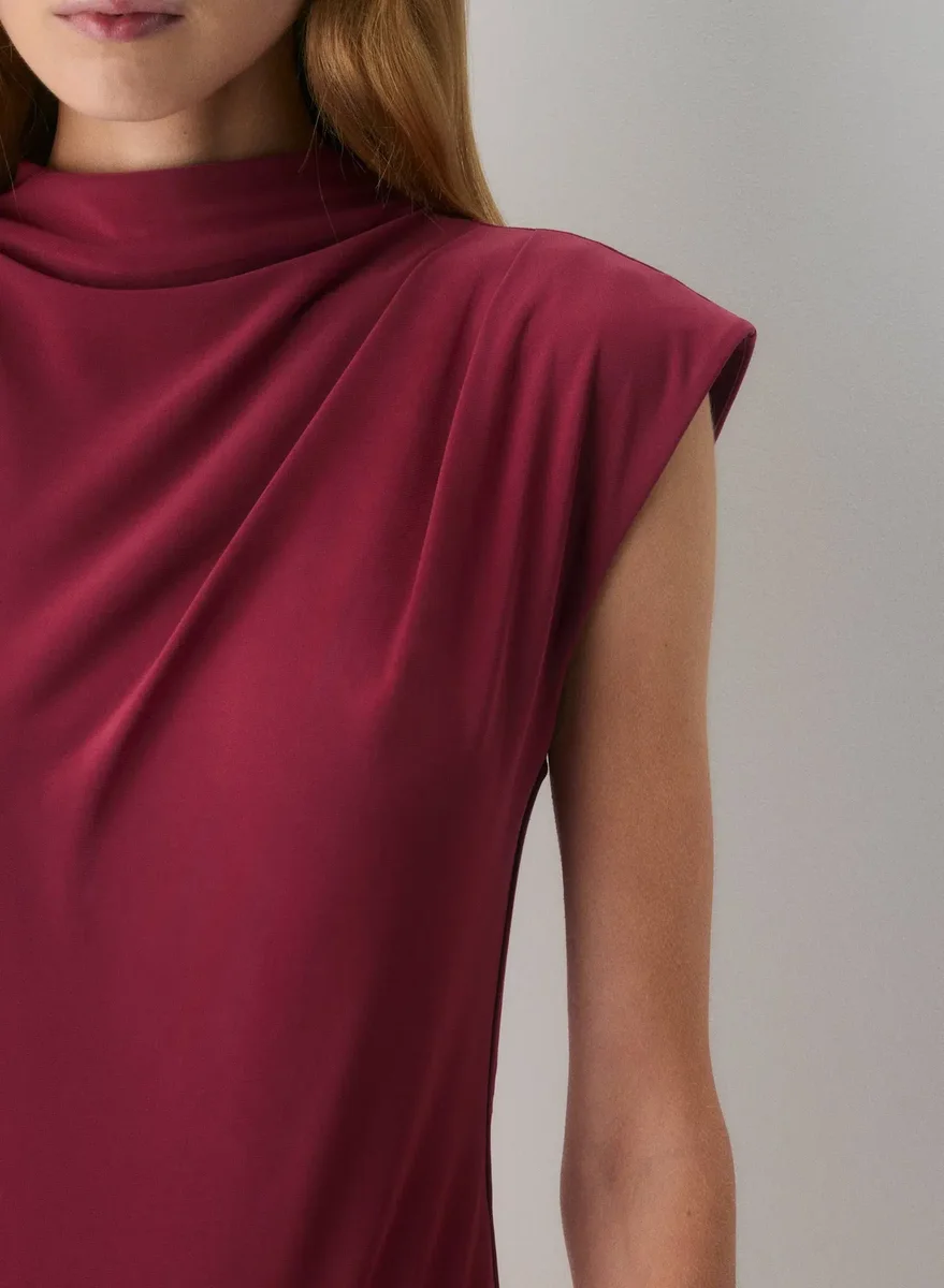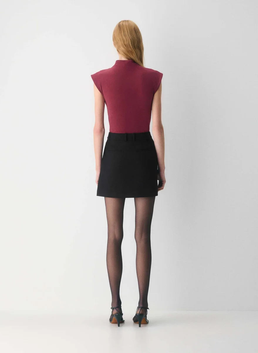 This is a mockneck bodysuit with a tight fit and thong-cut bottom. It’s made with Smooth Matter™ — drapey stretch jersey with a luxe, sleek feel and soft sheen.