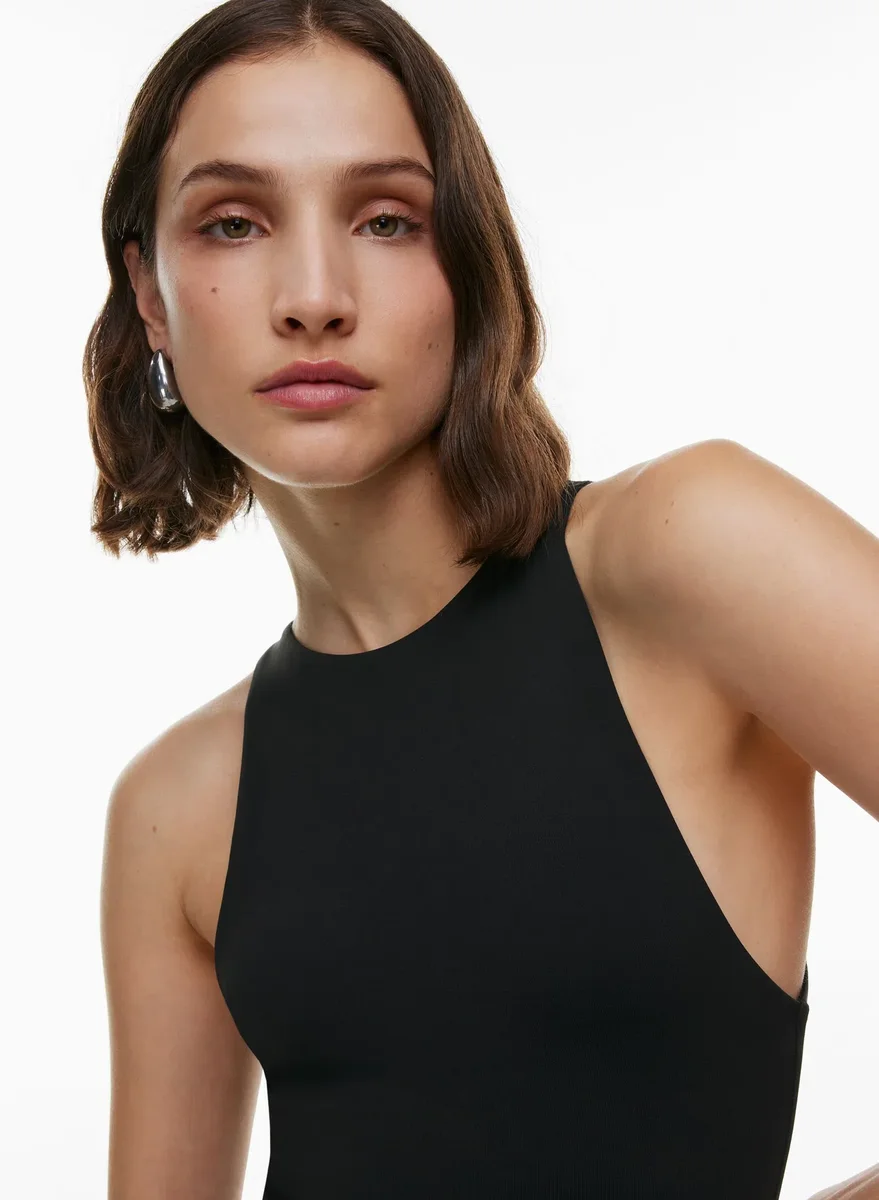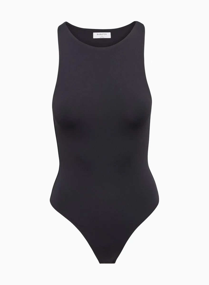 Slip into another decadeThis is a high-neck bodysuit with double-layer fabric and a thong-cut bottom. It’s made with Babaton’s signature Contour — luxe,