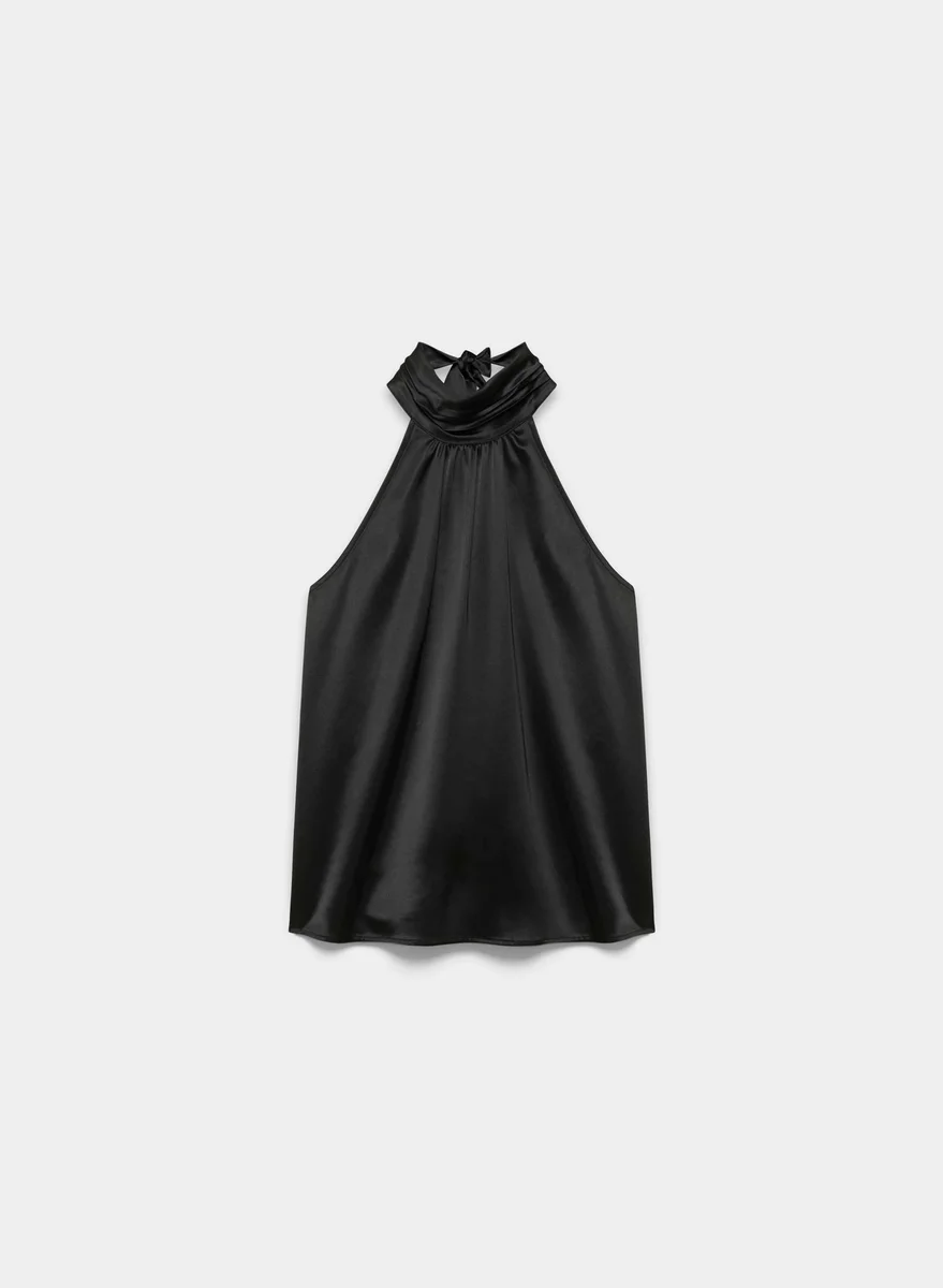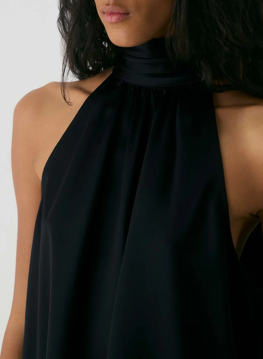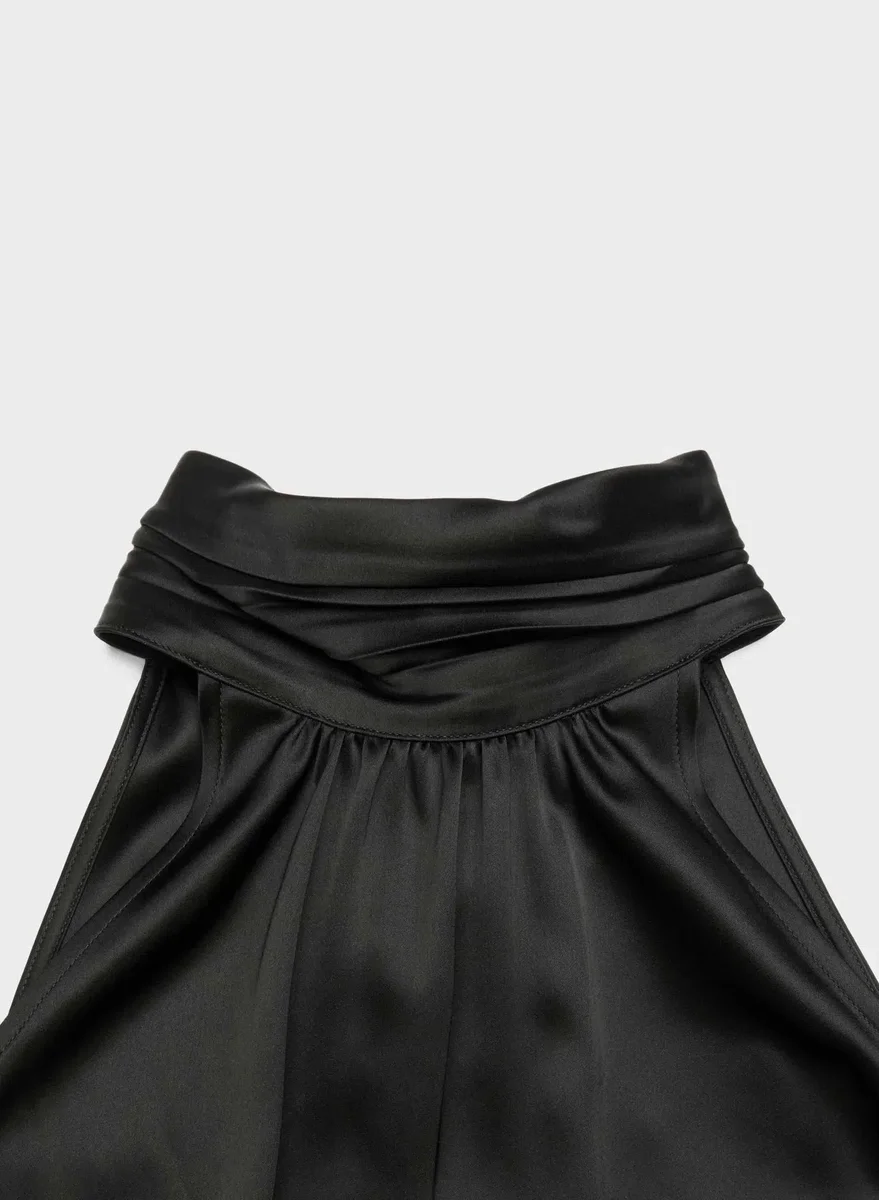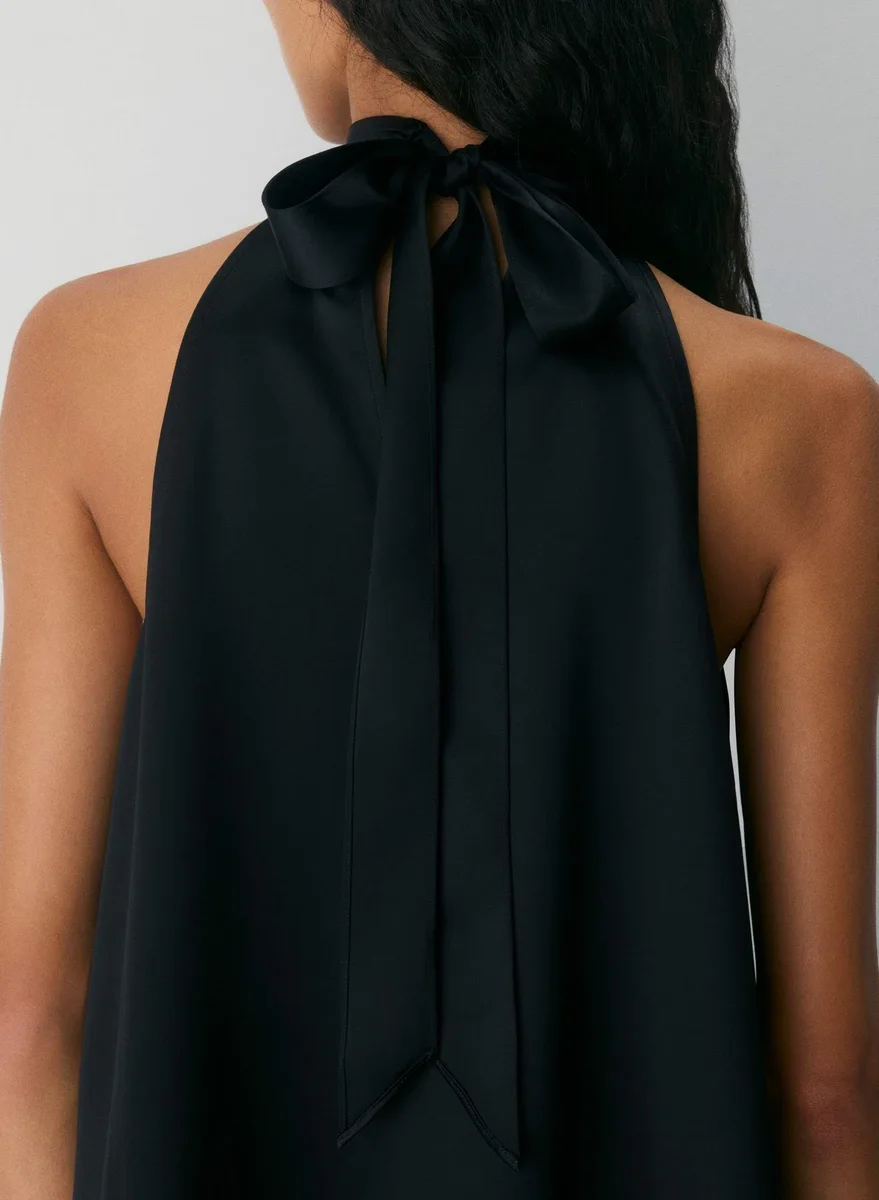Turn aroundThis is a halter top with a tie detail at the back. It’s made from double-faced satin with a soft sheen and luxurious next-to-skin feel. This fabric