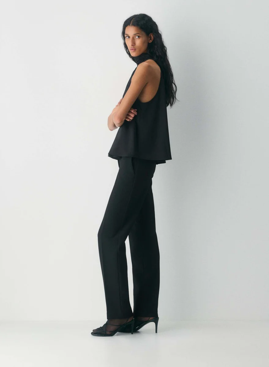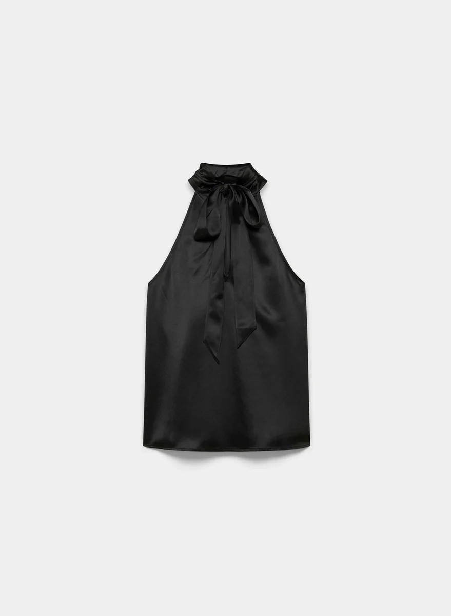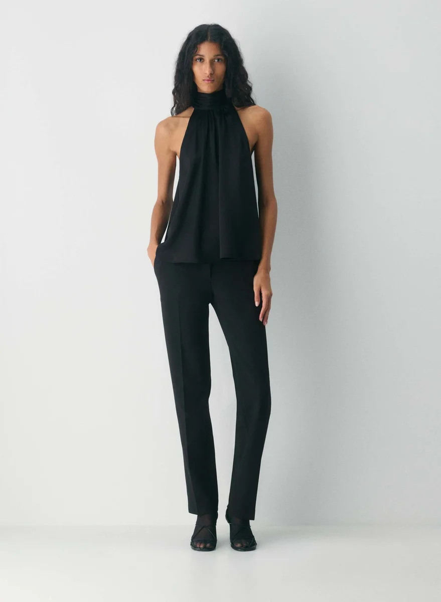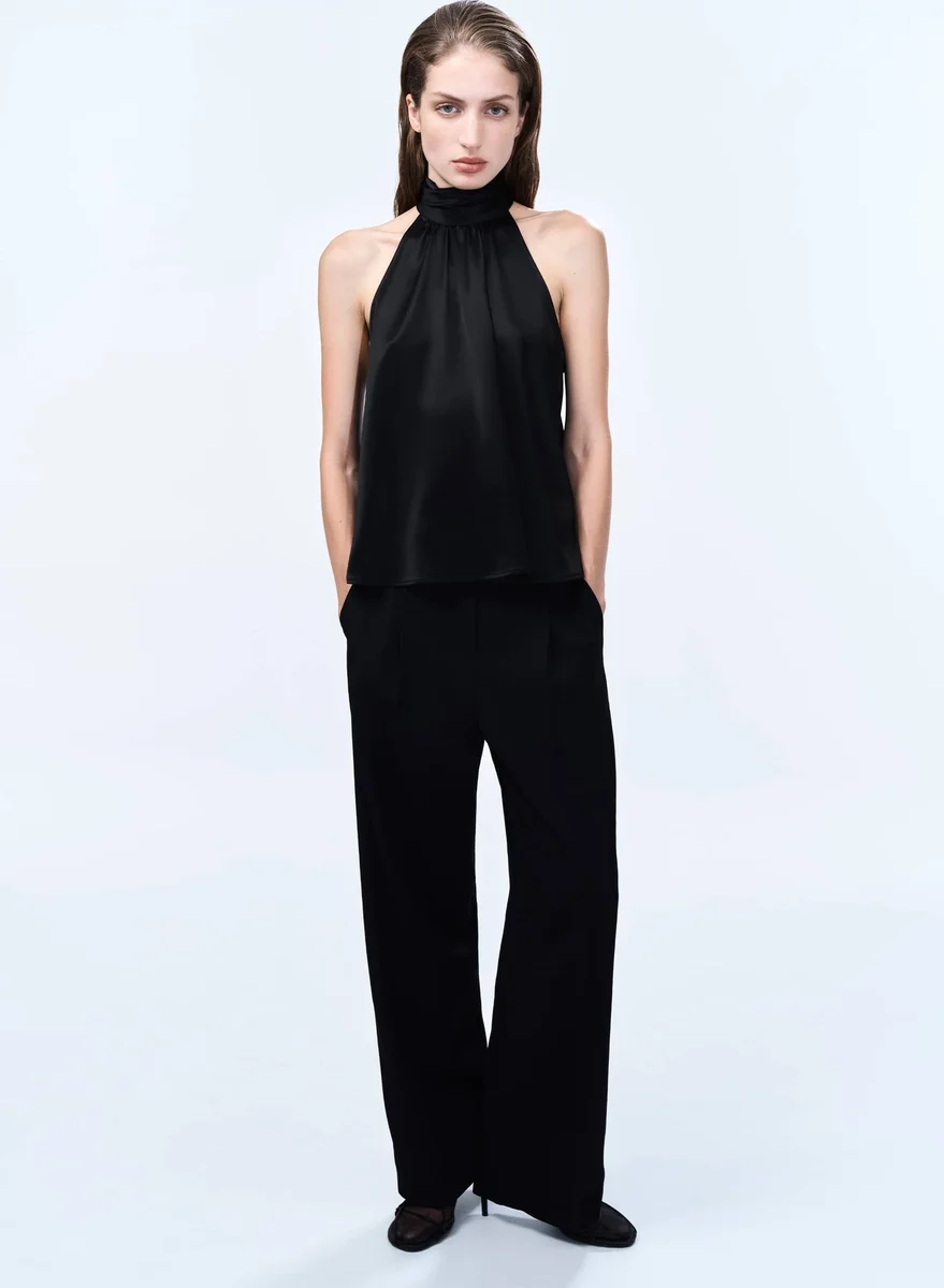 Turn aroundThis is a halter top with a tie detail at the back. It’s made from double-faced satin with a soft sheen and luxurious next-to-skin feel. This fabric