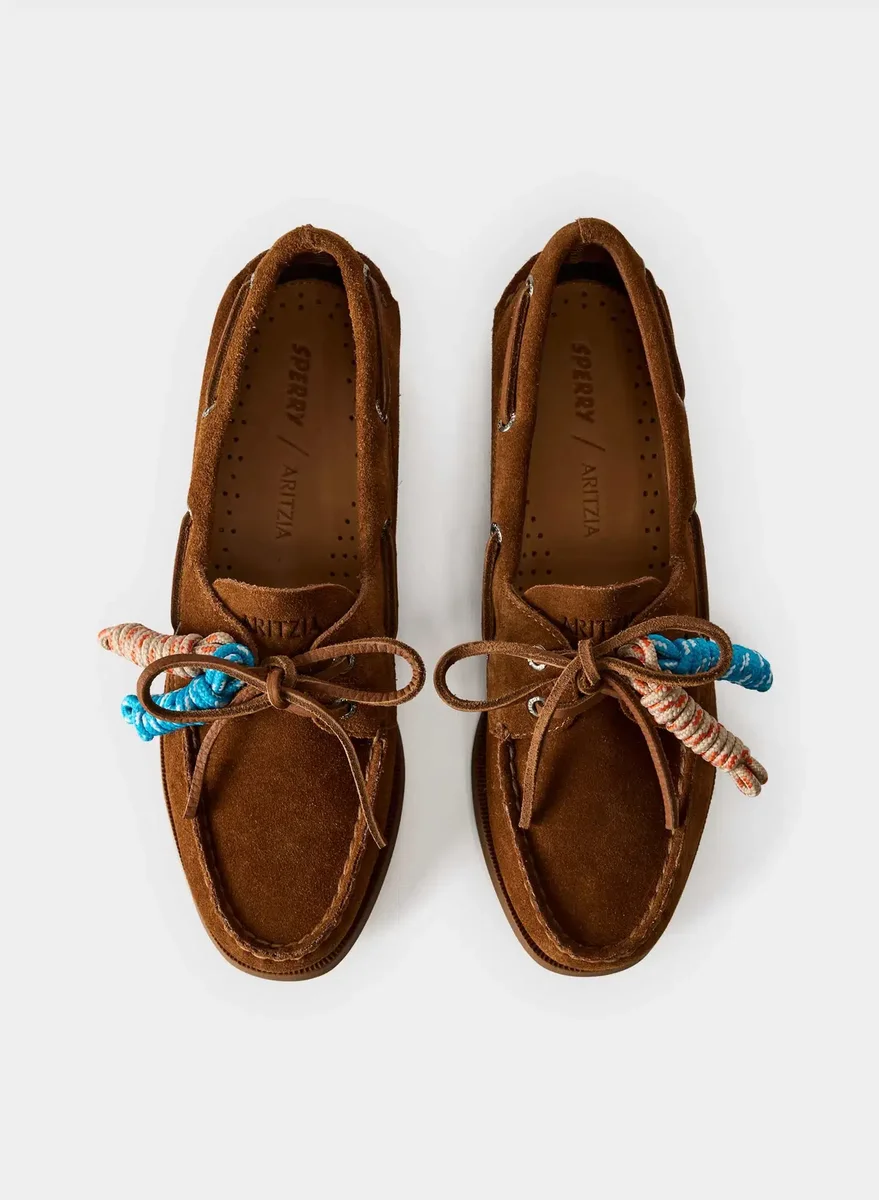 An exclusive Aritzia x Sperry collaboration, these are classic boat shoes featuring traditional moccasin stitching. They come with an extra set of coloured laces for a customizable look and are made with luxurious textured suede. They come in women’s sizing.